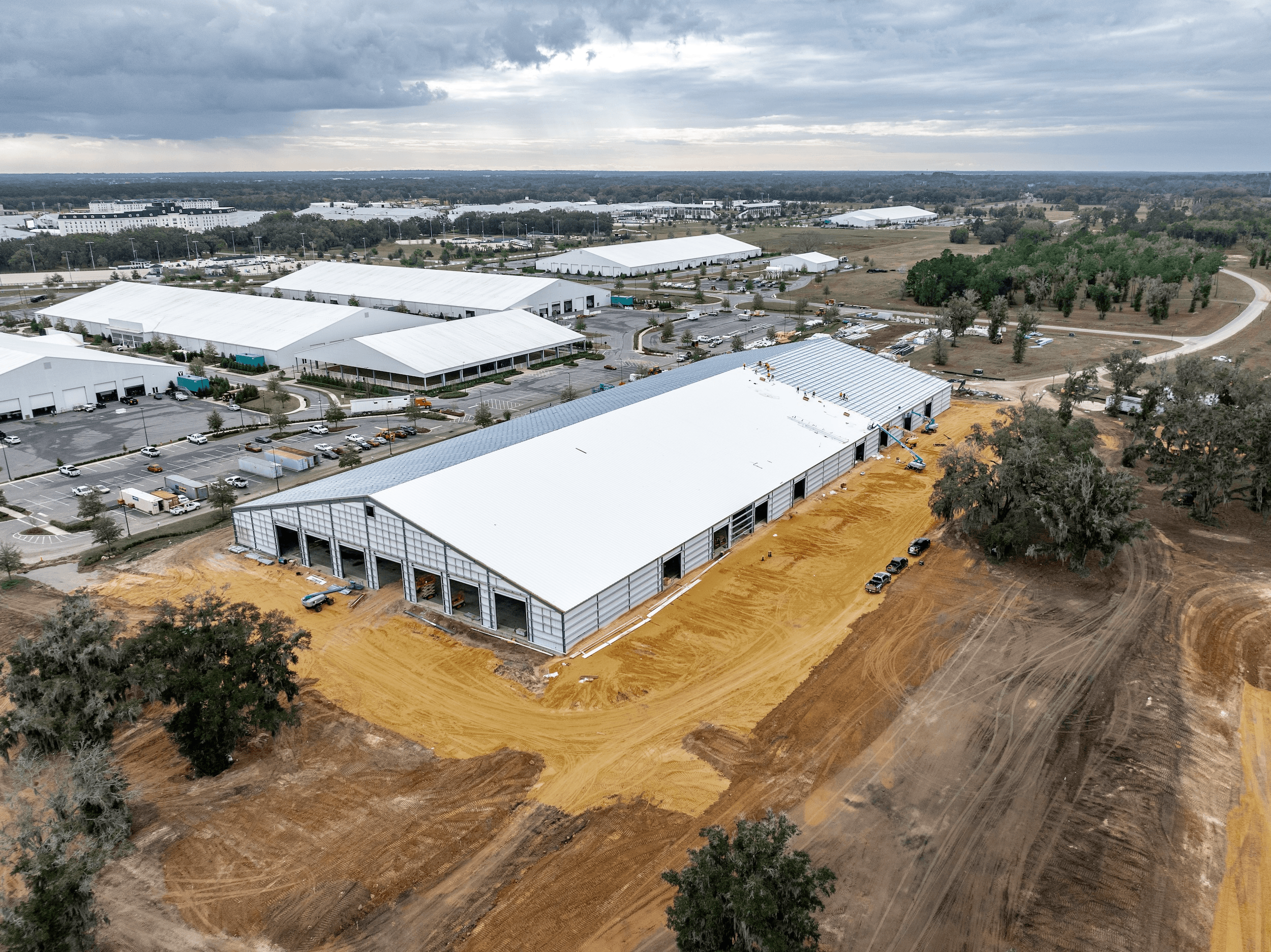 While the new indoor arena nears completion, work continues on the development of the seven outdoor arenas and surrounding areas. The outdoor arenas offer stunning views of live oak trees and a serene pond, serving as an elegant backdrop for competitors and their horses. Judges’ booths, shaded holding areas, mature landscaping and horse-friendly pathways are just a few of the elements that will be completed in the upcoming months.