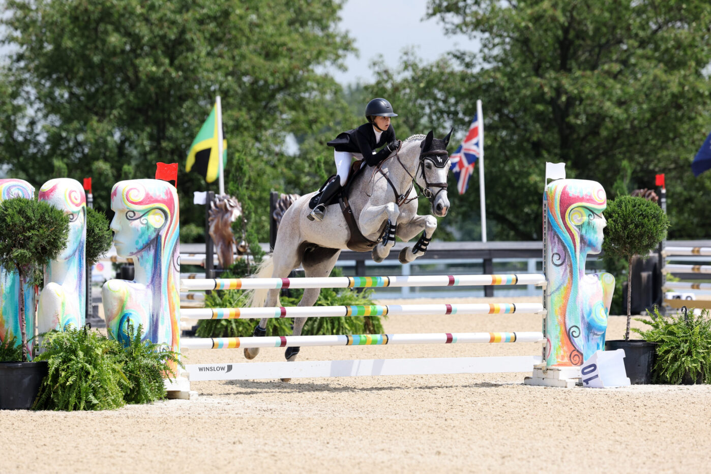 Wilmington, OH – This week’s Wilmington Sunday Spotlight shines on Dakota Zehler of Wellington, Florida. When she’s not showing in the Medium Pony Hunters or the 1.00m Junior Jumpers, Dakota is back in the barn helping the team at Flying Soleau LLC. We caught up with the bright young rider to learn more about her love for the sport and her two mounts, Lost Boy & Farmers Proud Hs.