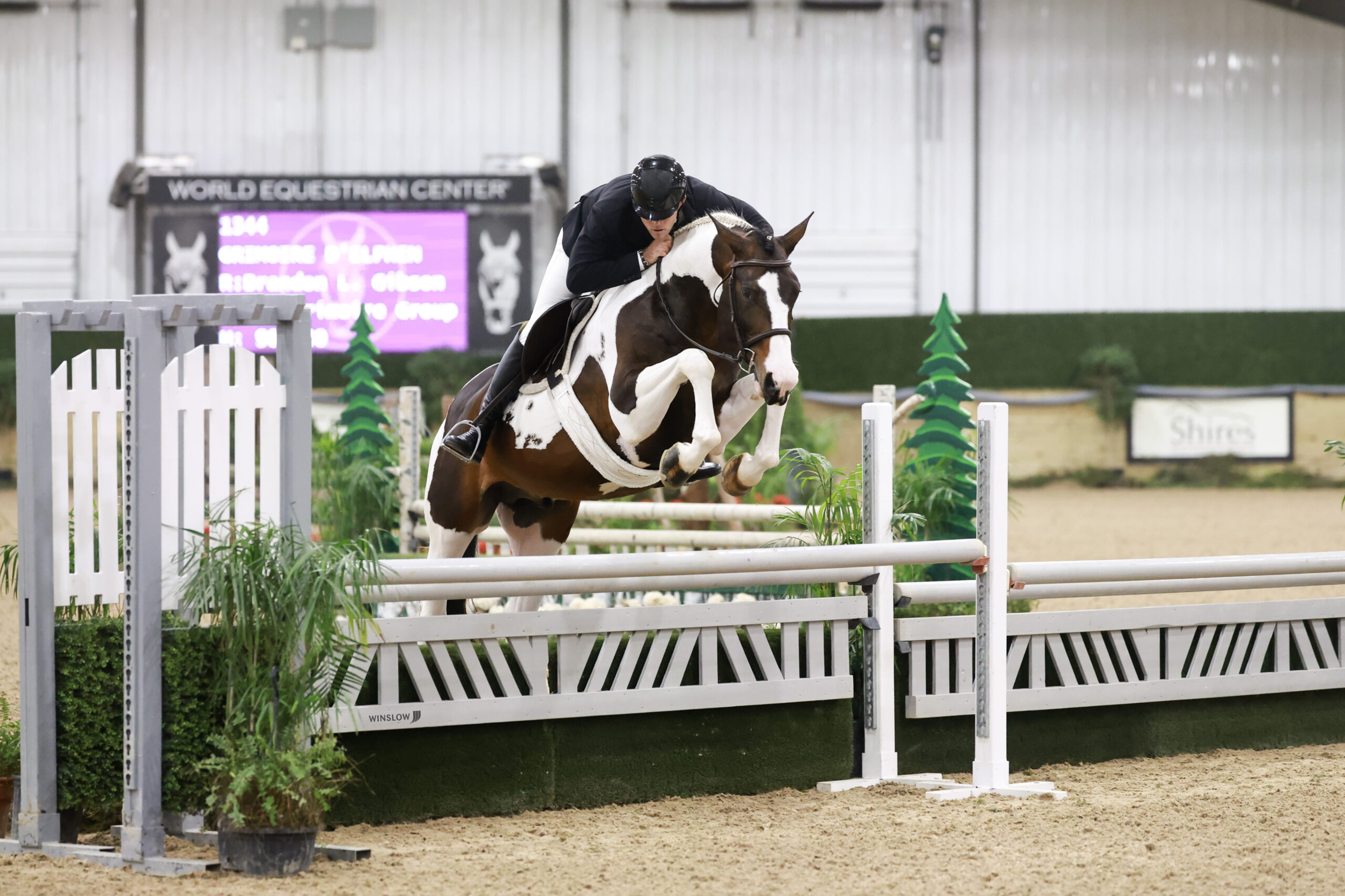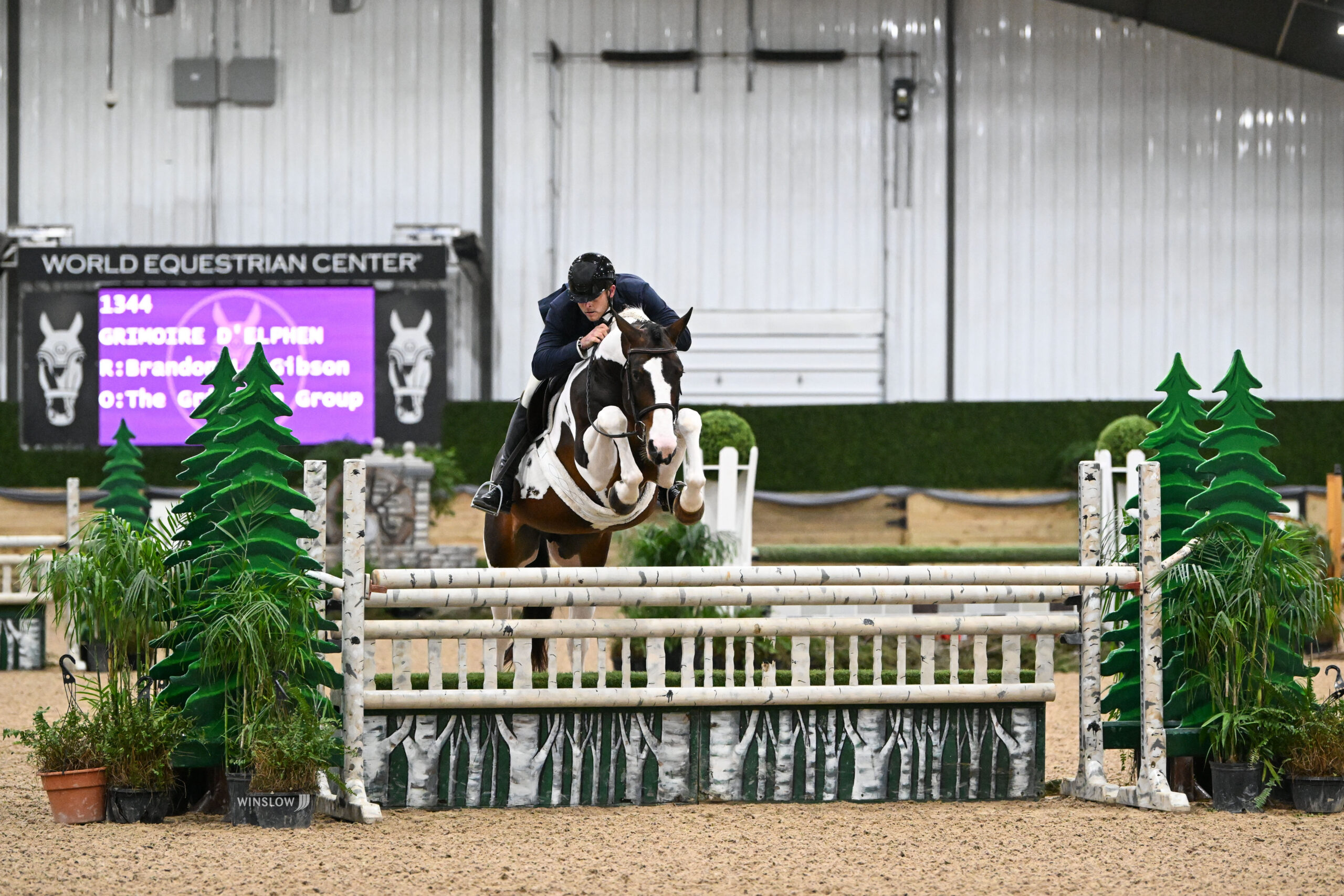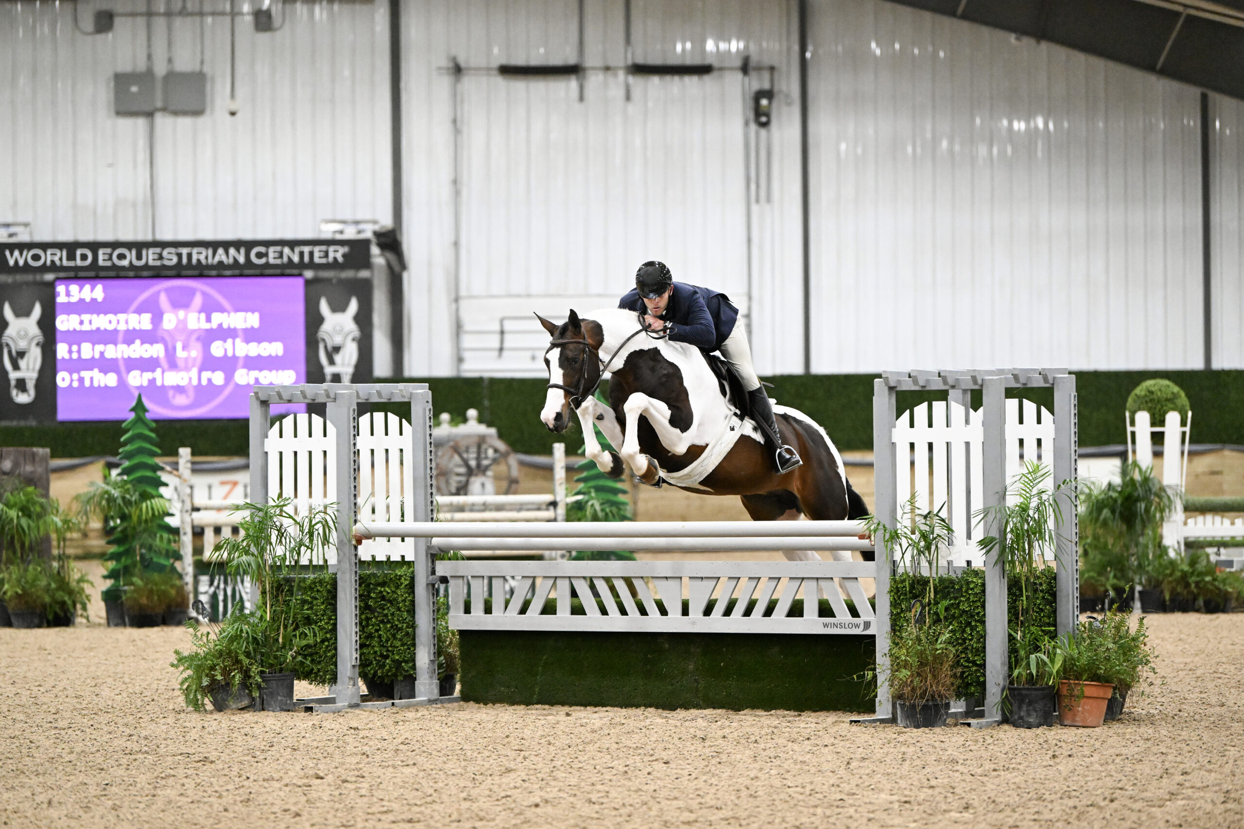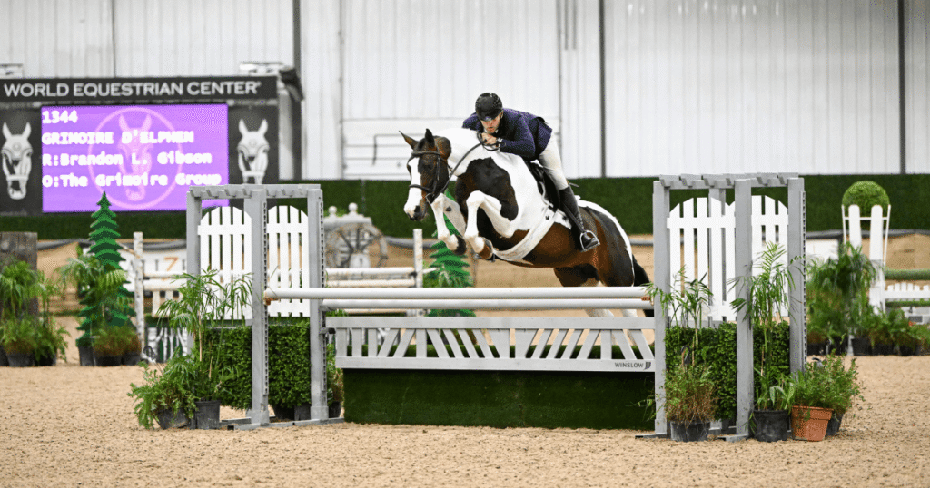 Wilmington, Ohio – This week’s Wilmington Sunday Spotlight shines on Brandon Gibson’s eight-year-old Selle Francais staillion, Grimoire d’Elphen, also known as Graham. The stunning Paint stallion by Thunder Gesmeray out of Dior d’Elphen can be found in picture-perfect form in the 3’9” Green Hunters and the National Derbies with Gibson in the irons. Though Graham never fails to impress with his presence in the ring, Gibson was quick to swoon over his puppy-dog demeanor in the barn. We caught up with Gibson to learn more about the star of his stable.