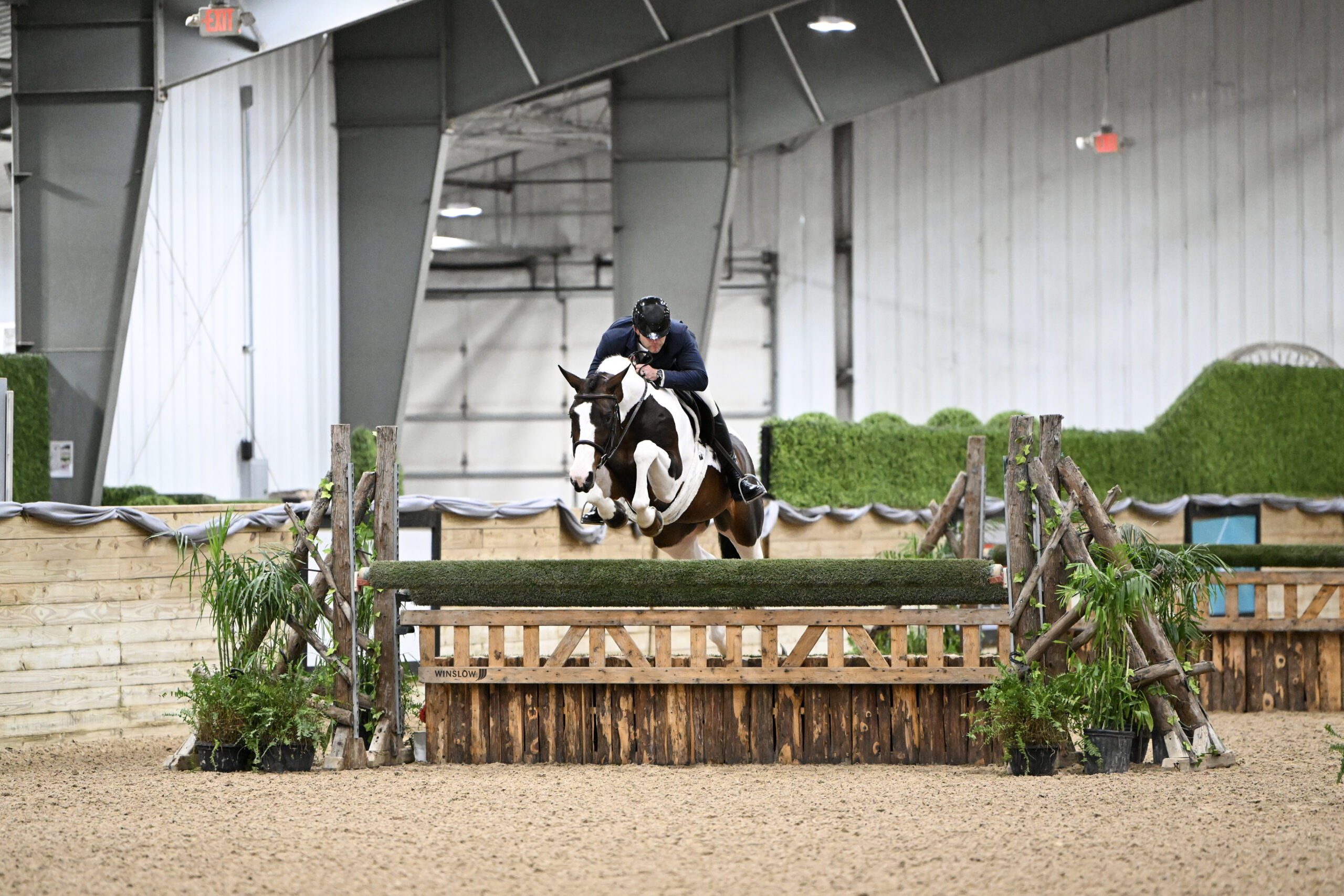 He showed here last winter in his first 3’6” classes. He really likes it here. He is easy to get to the ring here and he loves the constant temperature. The derbies are always done up so well, so it has given him really good exposure to that. We love bringing him here and he loves it too.