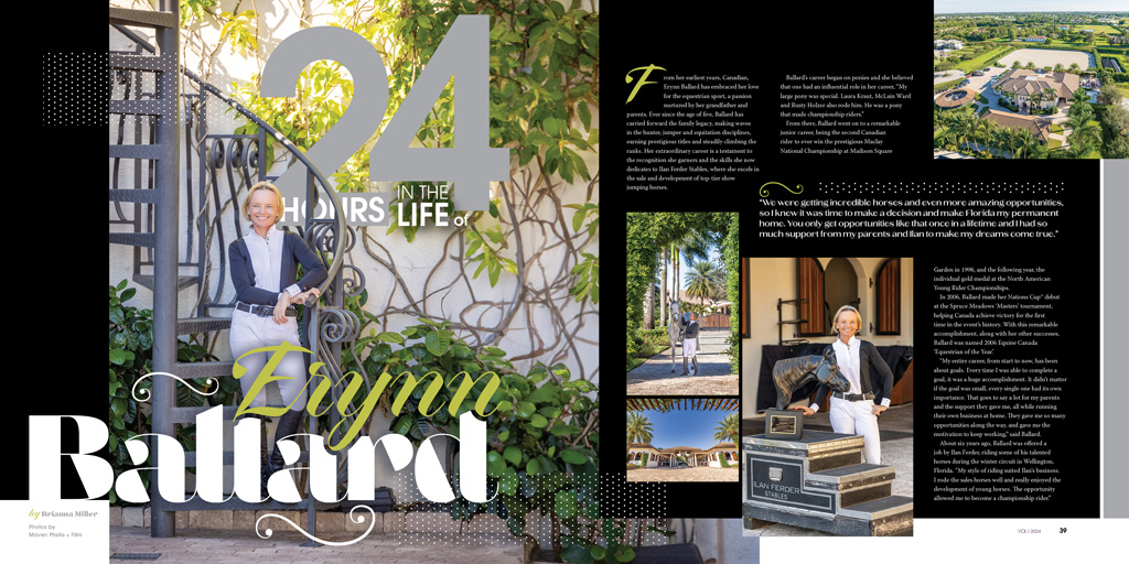 We spent 24 hours with Erynn Ballard, a professional show jumping athlete from Ontario, Canada. Her remarkable career stands as a testament to the acclaim she has earned, now channeling her expertise into Ilan Ferder Stables, where she excels in the sale and development of top-tier show jumping horses.