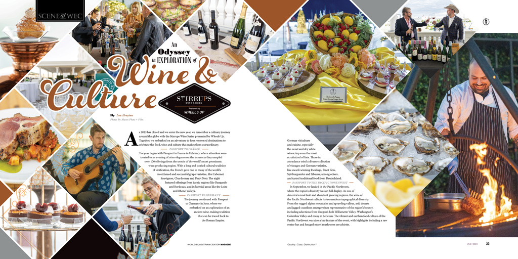 Throughout 2023, we traveled the world by way of food and wine at World Equestrian Center – Ocala with the Stirrups Wine Series presented by Wheels Up. In this ‘Scene at WEC – Ocala’ we remember a culinary journey around the globe and embark on an adventure to four renowned destinations to celebrate the food, wine and culture that makes them extraordinary.