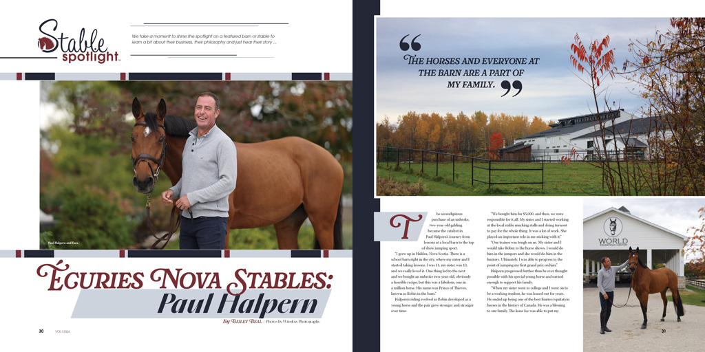 Our Stable Spotlight takes us to Montreal, Quebec, where we meet Canada’s decorated professional, Paul Halpern, and learn more about his Écuries Nova Stables. Since the launch of Nova, World Equestrian Center – Wilmington has become a frequent destination for Halpern and his barn family.