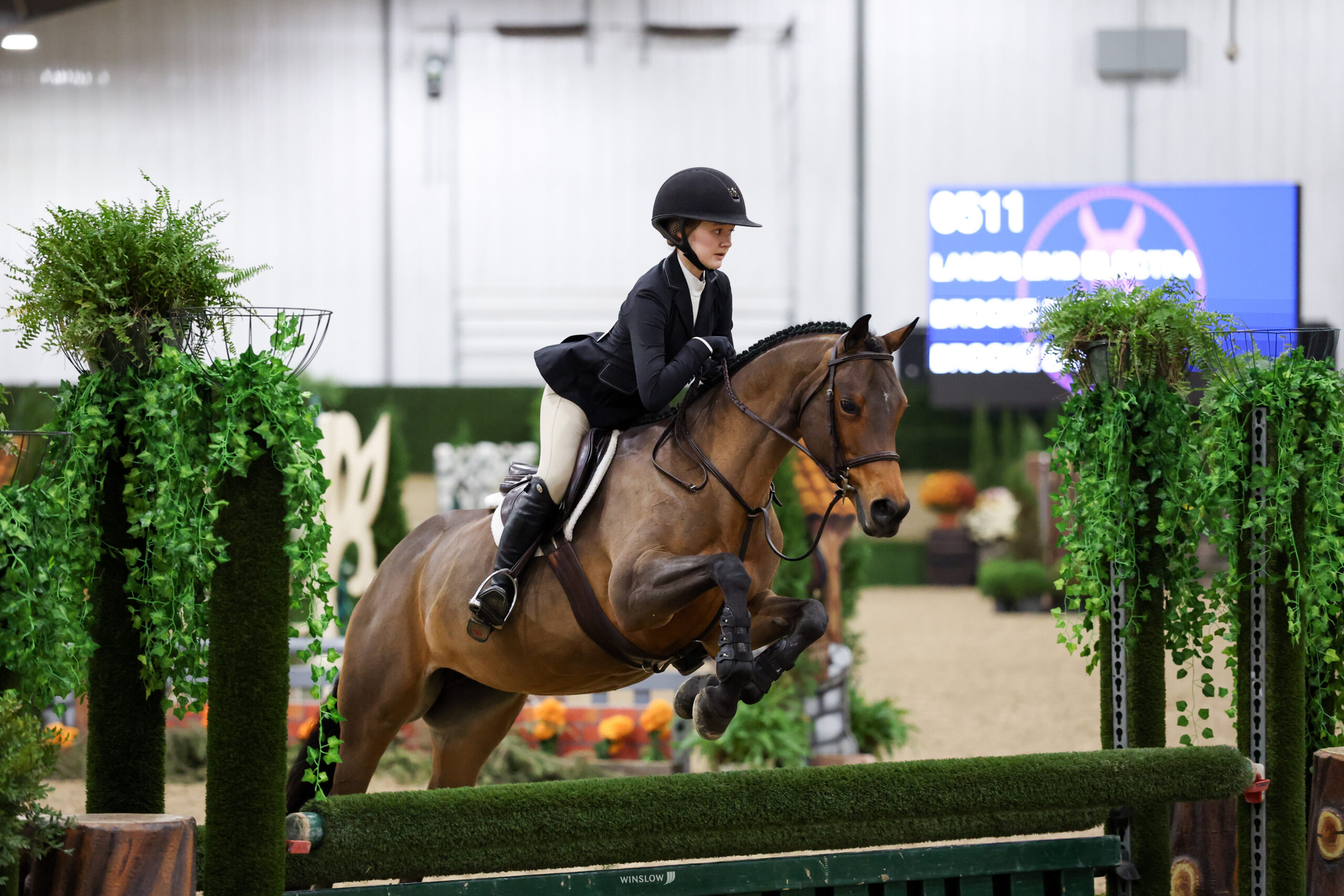 Barket is a frequent exhibitor in R+L Annex with the eight-year-old Welsh Pony Cross, ‘Ellie,’ “Land’s End Electra is Ellie in the barn! We just lease her and she was my green pony last year. She is so fun to ride. We will do Pony Finals next year and hopefully indoors!”
