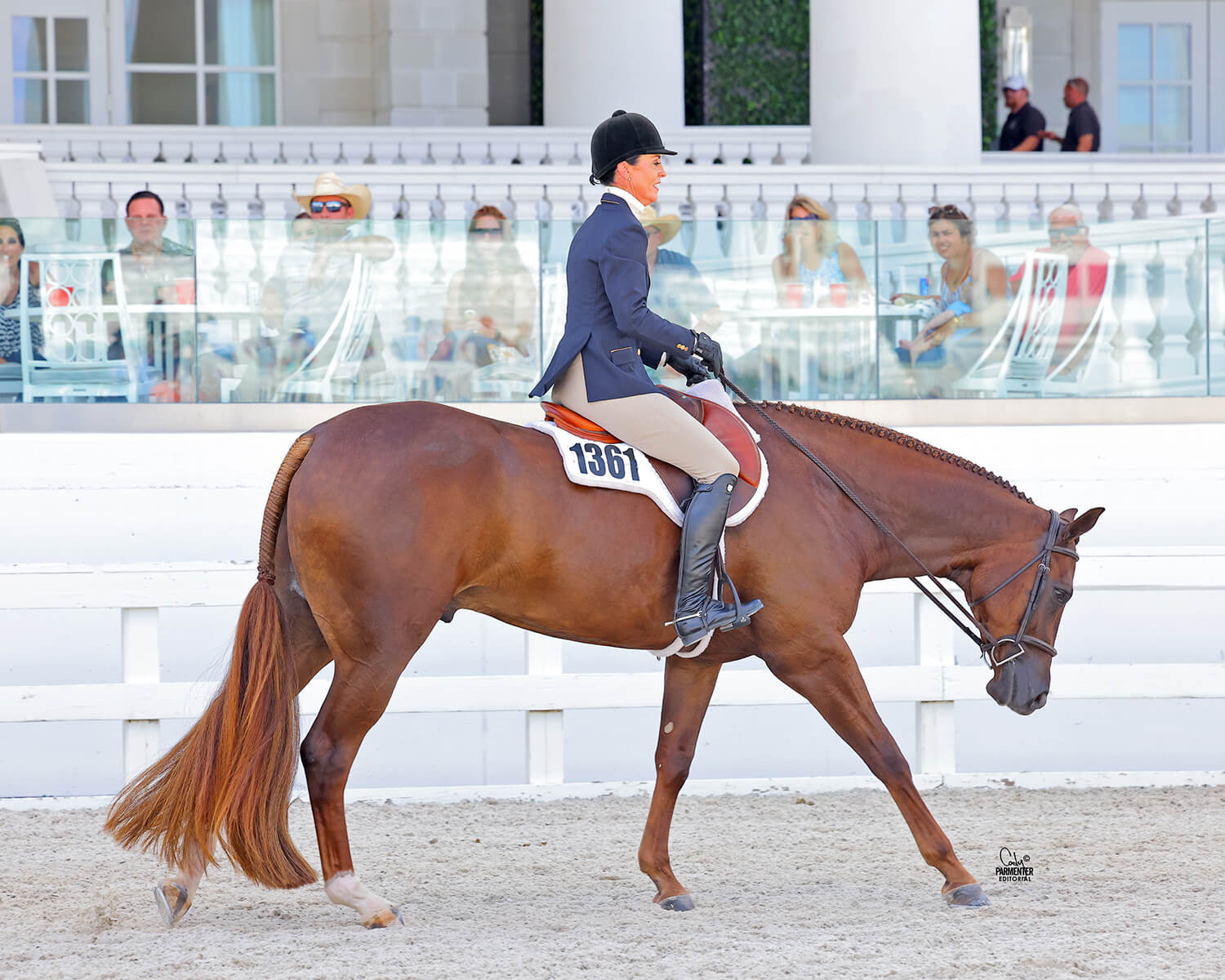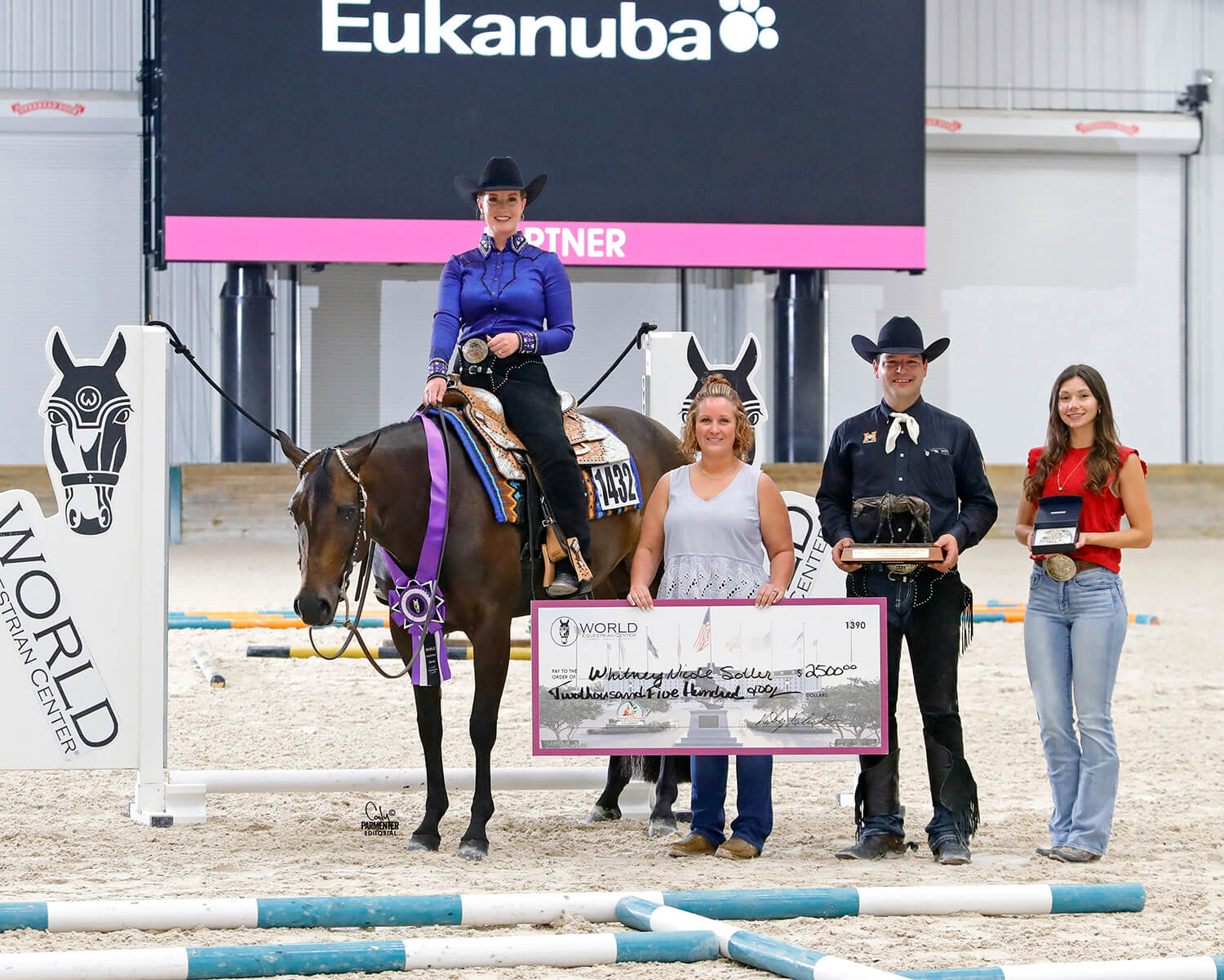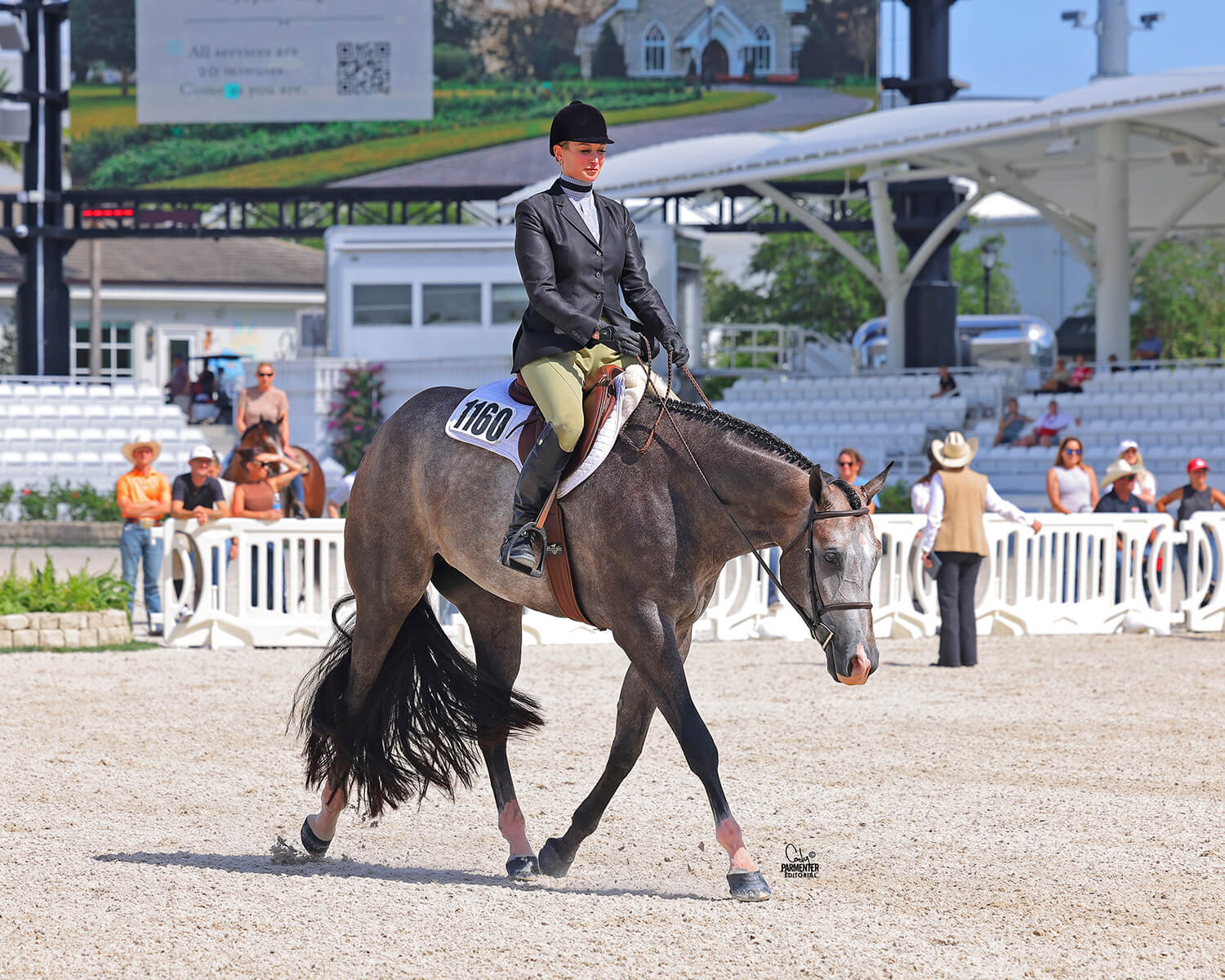 Taking the Reserve ribbon was Sara Simons aboard A Top Gun (Required Invitation x Ms Silver Sensation), a three-year-old gelding owned by Stephanie Mohindra. Katy Jo Zuidema rounded out the top three riding Marcie McClenon’s four-year-old stallion, What Is The Matter (What Matters Most x Lastminuteinvestment).