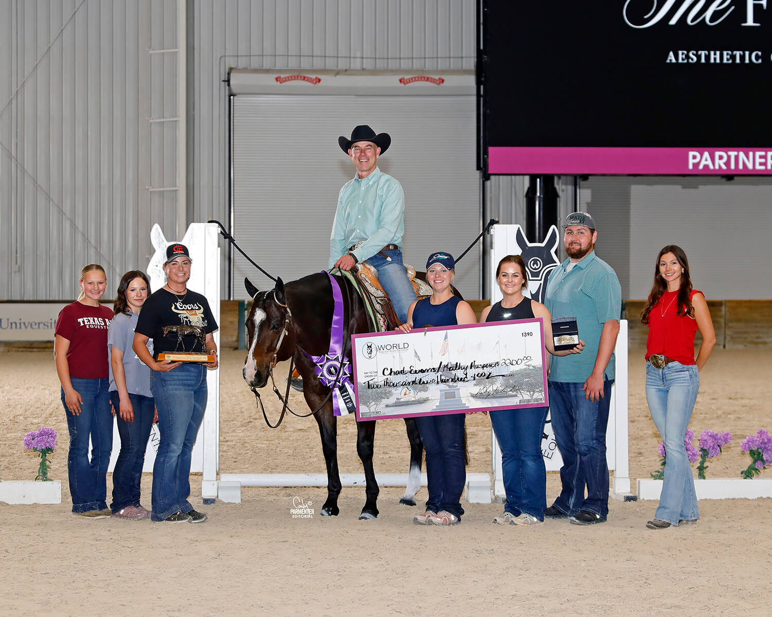 This win was especially meaningful for Wheeler, who has known the gelding since birth. “We helped raise him along with our customers, Johnny and Karen Tart. We watched him be born, so this is extra special because we were all there—my husband and his owners. It’s so hard to have one make it to the pen, let alone one that you raise from the start, so it’s just hard to put into words.”