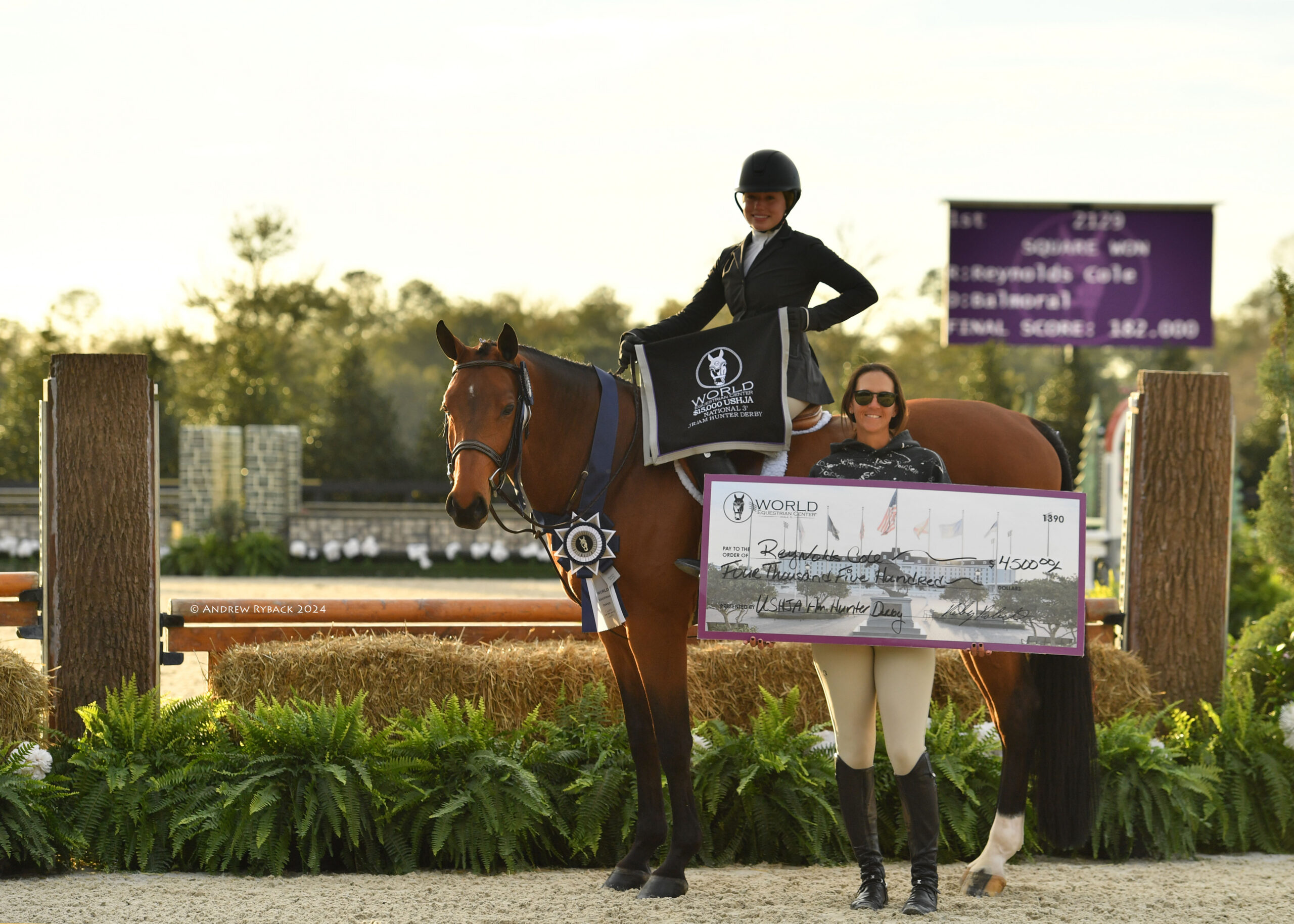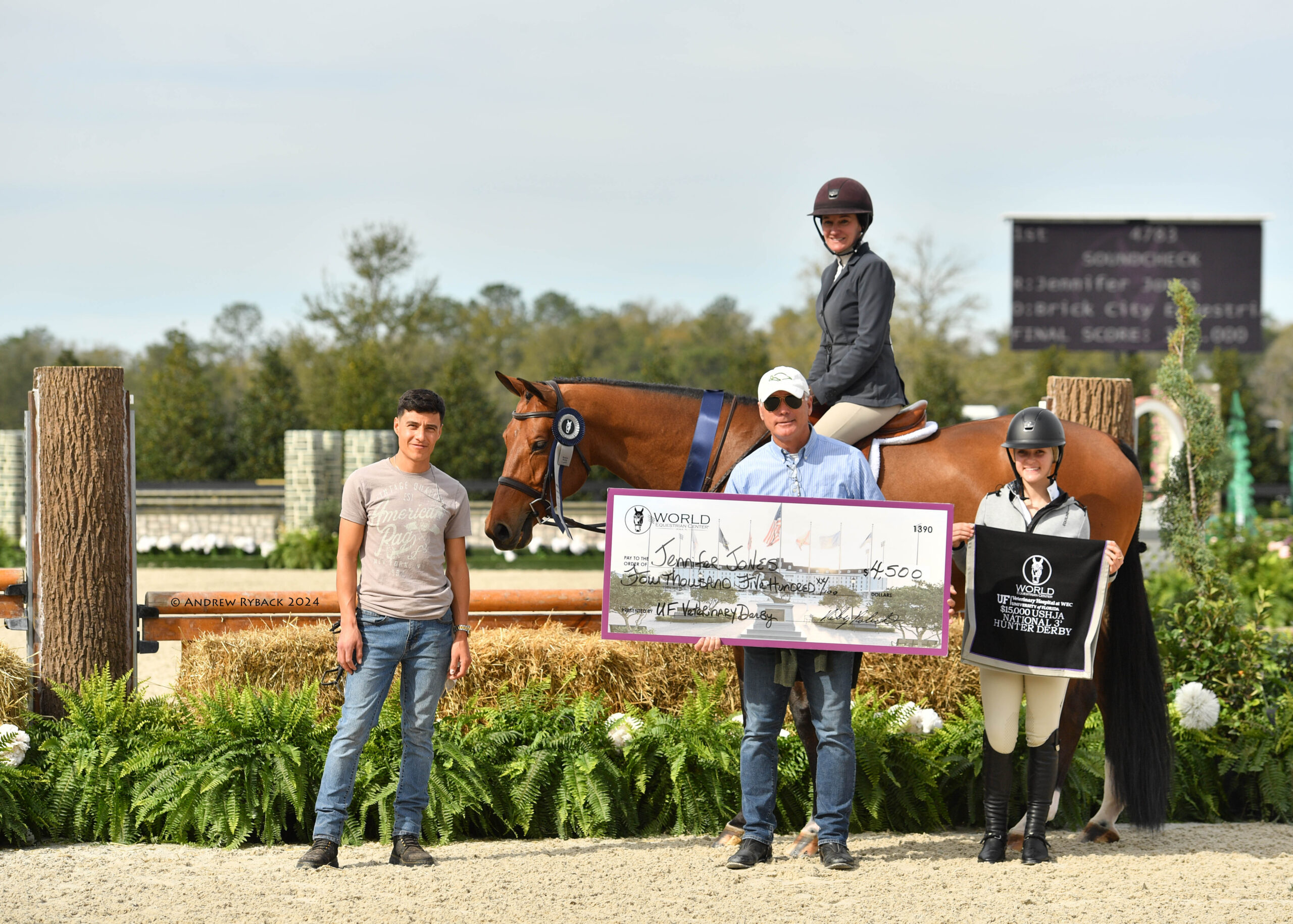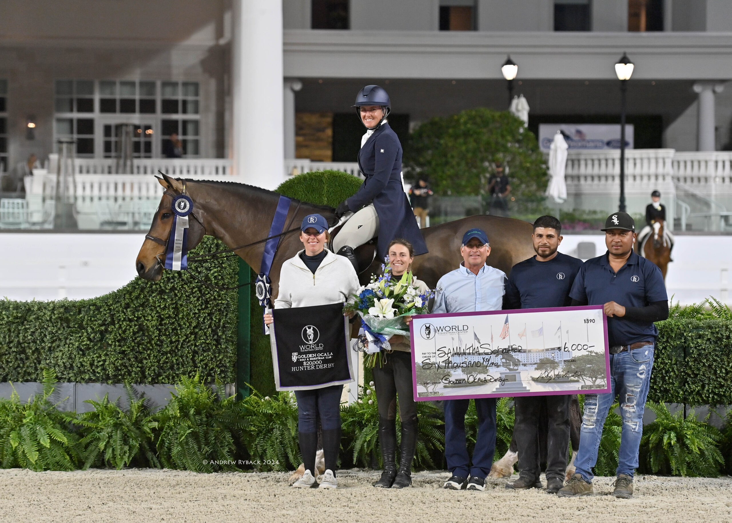 Ocala, FL – The inaugural World Champion Hunter Rider week of the 2024 Winter Spectacular Show Series attracted the nation’s best hunter athletes to vie for top honors. During this special edition of Hunter Derby Friday, nearly 150 stunning combinations competed in four derbies: the $15,000 UF Veterinary Hospital USHJA National 3’ Open Hunter Derby, $15,000 USHJA National 3’ Junior Hunter Derby, $15,000 USHJA National 3’ Amateur Hunter Derby, and the $20,000 Golden Ocala 3’6”-3’9” Hunter Derby, held under the lights of the WEC Grand Arena.