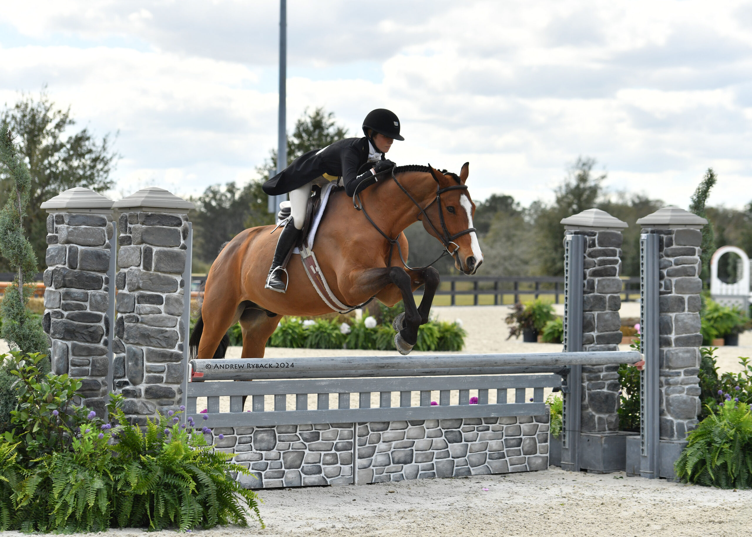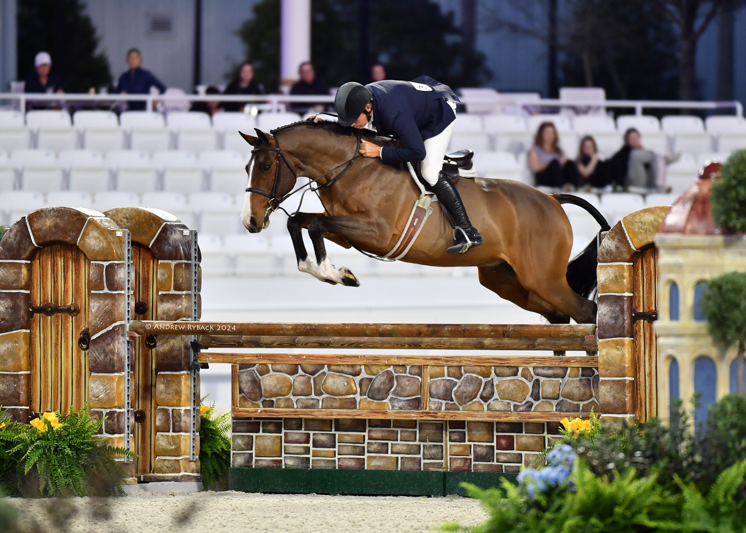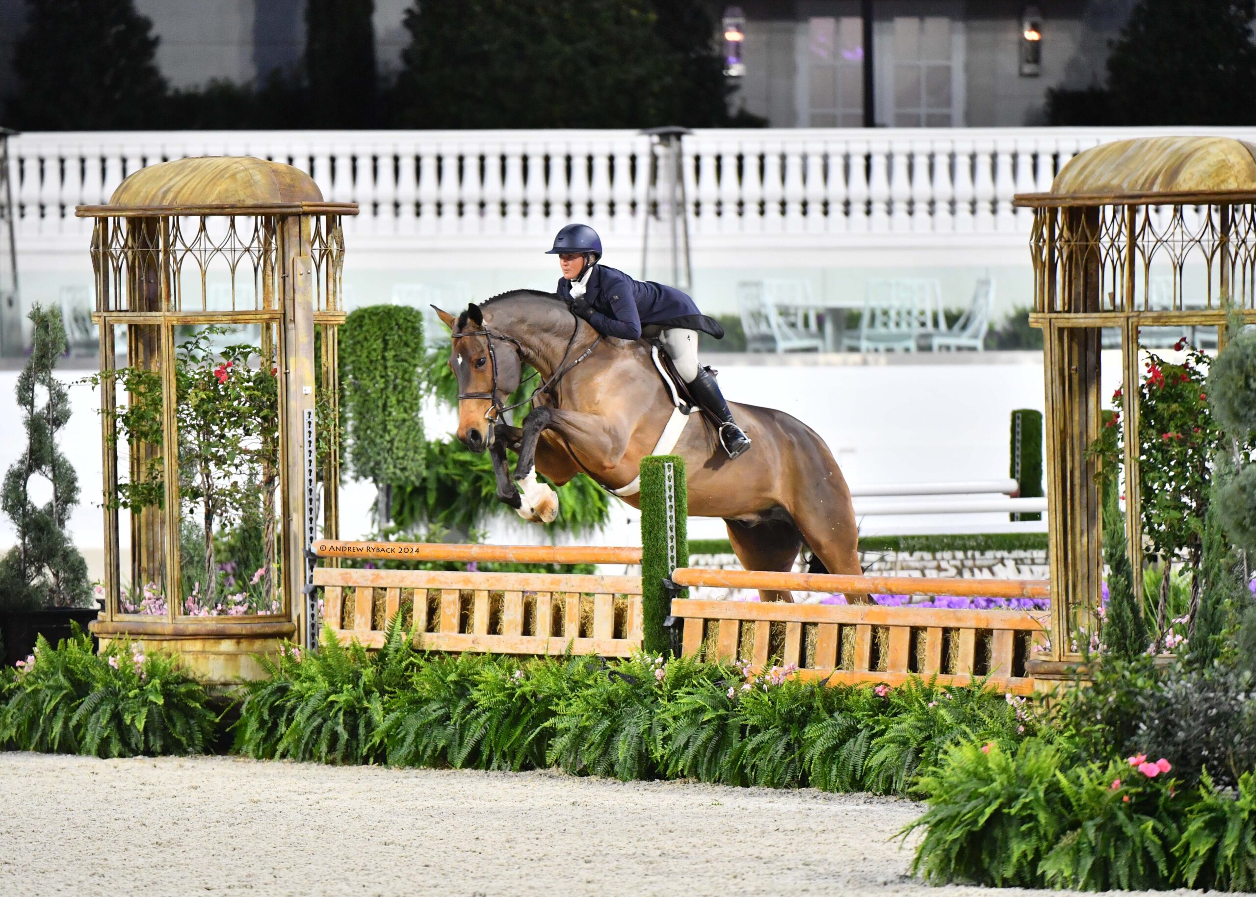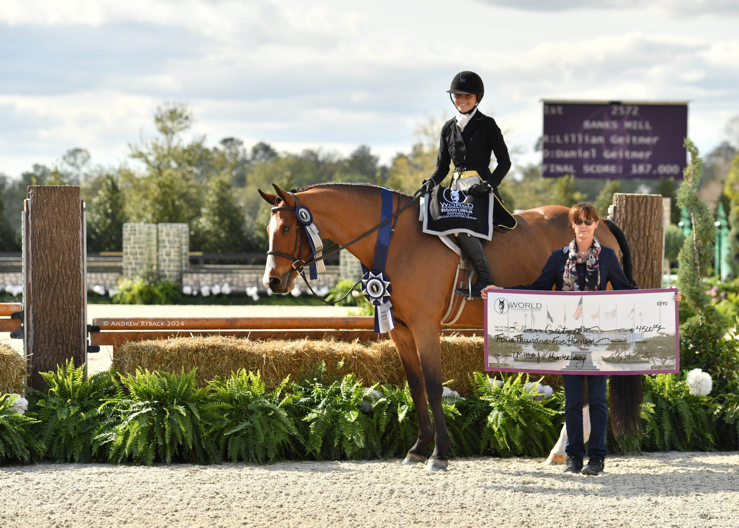 Ocala, FL – The inaugural World Champion Hunter Rider week of the 2024 Winter Spectacular Show Series attracted the nation’s best hunter athletes to vie for top honors. During this special edition of Hunter Derby Friday, nearly 150 stunning combinations competed in four derbies: the $15,000 UF Veterinary Hospital USHJA National 3’ Open Hunter Derby, $15,000 USHJA National 3’ Junior Hunter Derby, $15,000 USHJA National 3’ Amateur Hunter Derby, and the $20,000 Golden Ocala 3’6”-3’9” Hunter Derby, held under the lights of the WEC Grand Arena.