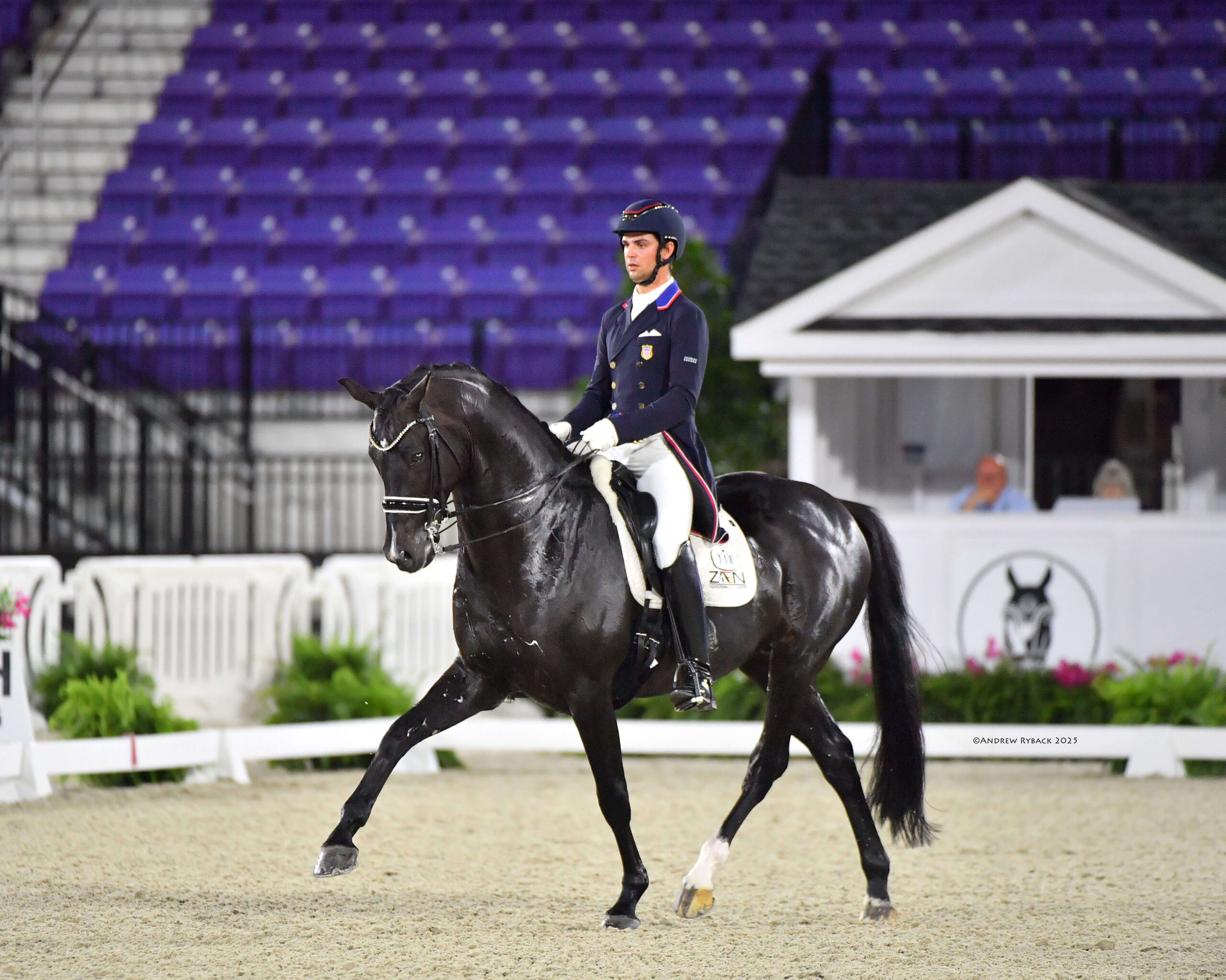 Ocala, FL – Two grand prix classes were held under the lights in the WEC Stadium on Friday, May 23, 2025, on the opening day of the May Dressage CDI3* presented by Hampton Green Farm at World Equestrian Center – Ocala (WEC). In the first class, the Grand Prix for Freestyle CDI3* presented by The Fix Aesthetic Clinic, the winner’s blanket was placed on Bellena, ridden by Benjamin Ebeling (USA) and owned by Vantage Equestrian Group. Rounding out the night was the Grand Prix for Special CDI3* presented by The Fix Aesthetic Clinic with Christian Simonson (USA) taking the win aboard Indian Rock, owned by Zen Elite Equestrian Center, in their international debut.
