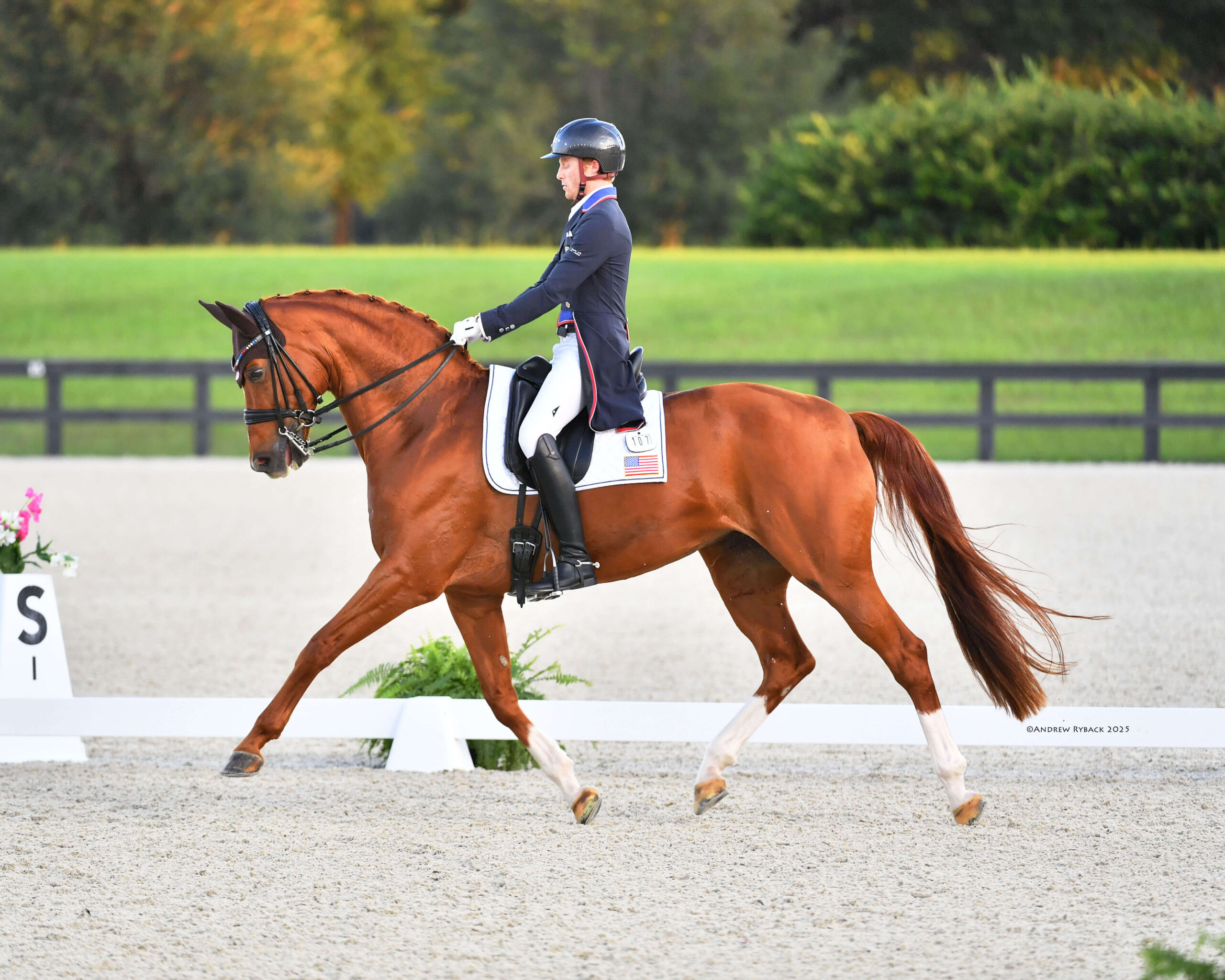 Simonson started riding Indian Rock in January 2025 when the horse was brought to the U.S. from Holland, where it showed successfully with previous rider Emmelie Scholtens (NED), including at the 2024 Paris Olympic Games. Simonson and Indian Rock took some time to get accustomed with each other before competing at the national level in April. Simonson still communicates regularly with Scholtens to discuss Indian Rock so he can learn more about the horse.