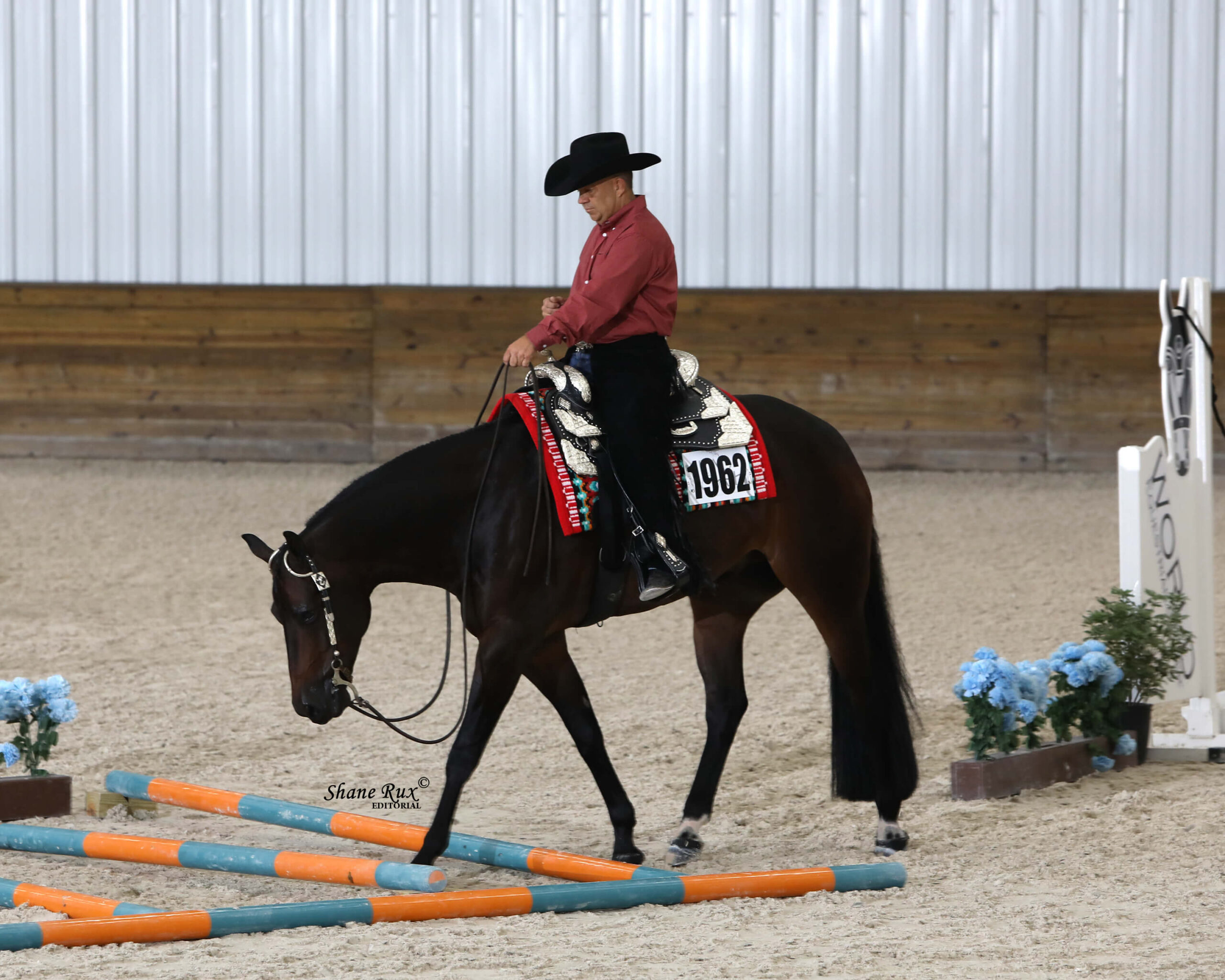 Tim Kimura designed the pattern once again in UF Health Indoor Arena 2. “The pattern rode really well. I was lucky to have my wife help me find my spots, and both horses are the point-and-shoot types.”