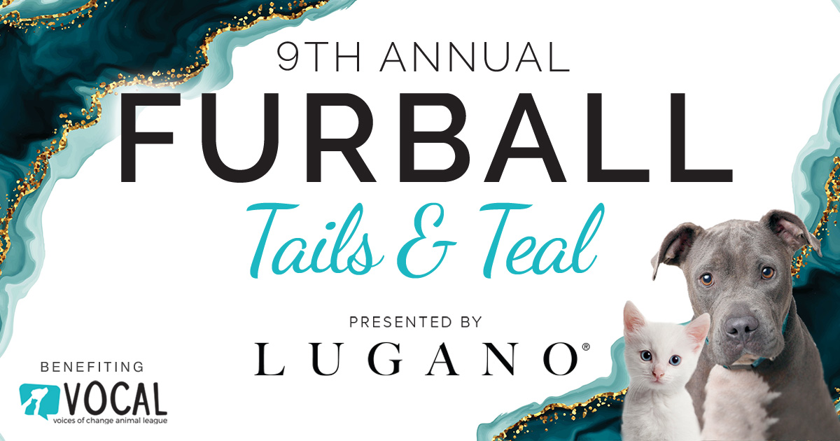 The theme “Tails & Teal” for the 9th Annual VOCAL Furball presented by Lugano Diamonds blends the black-tie optional event with the mission of raising funds to help with the prevention of homeless pets in the area. The Furball is the principal fundraiser each year for the Voices of Change Animal League (VOCAL).