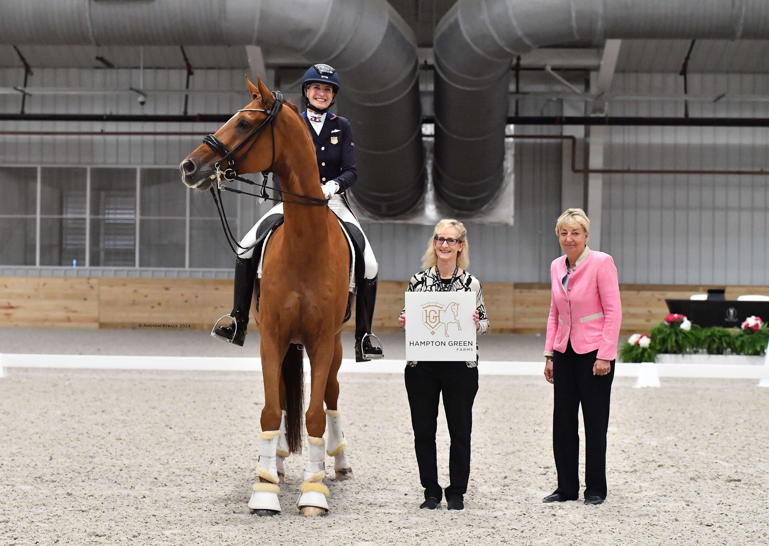 Charlotte Jorst’s relationship with her new mount, the 19-hand Sezuan gelding GPF’s S-Express, yields an almost 70% victory in the CDI1* Intermediate I Freestyle. Photo by Andrew Ryback Photography