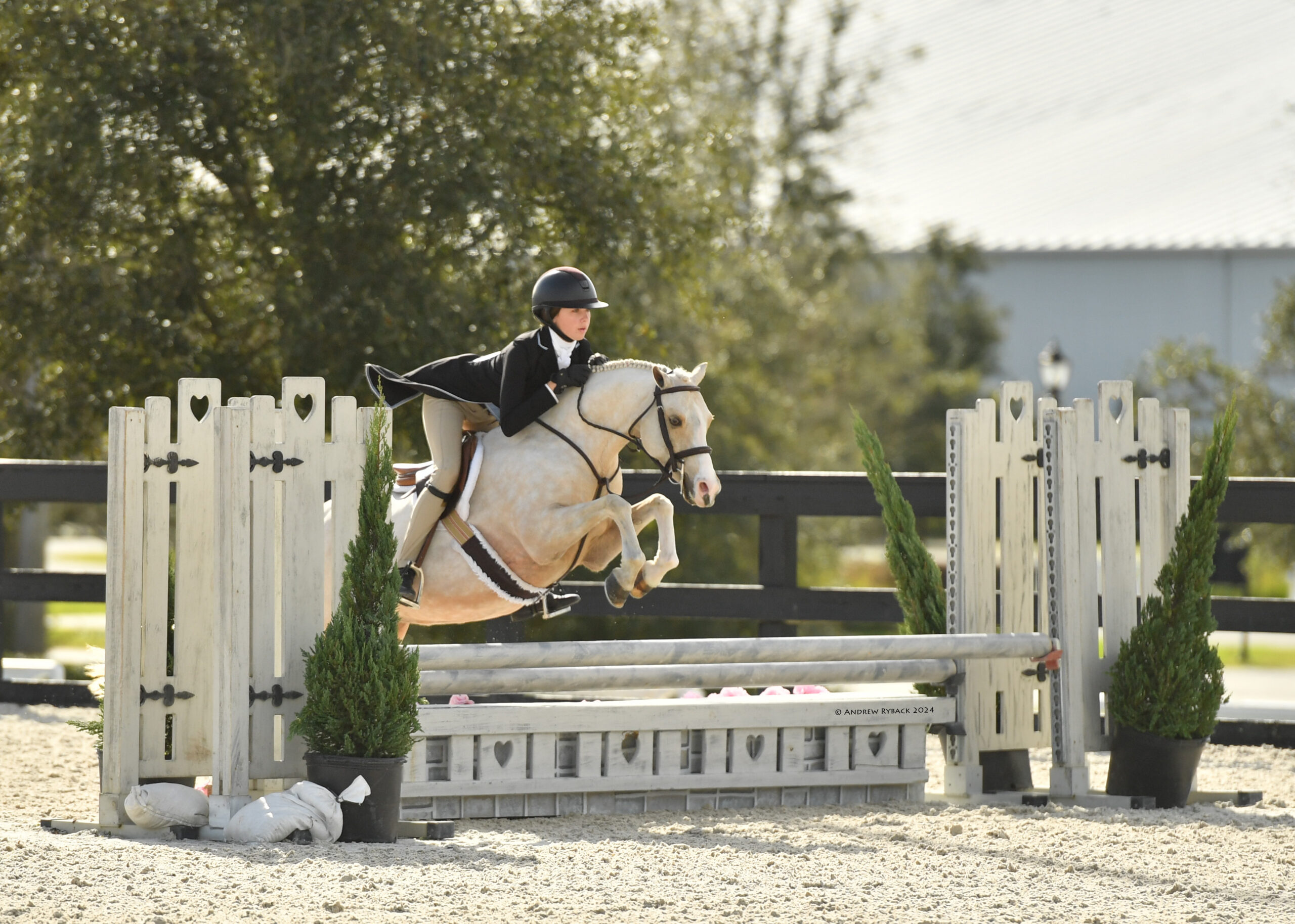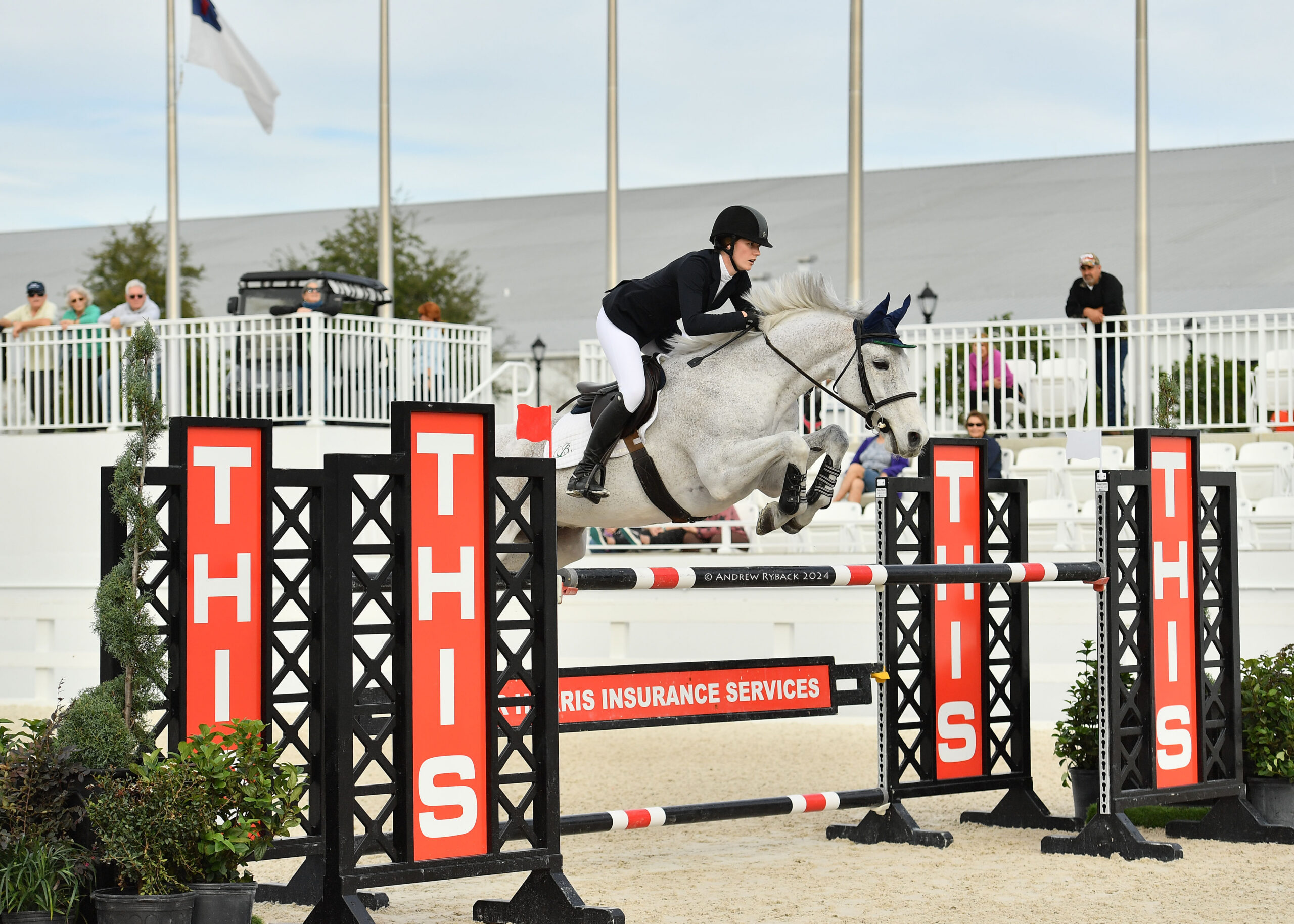Campbell Clement and BWL Ranch 1, LLC’s Whinny The Blue prevailed in the $2,000 USHJA Pony Hunter Derby.