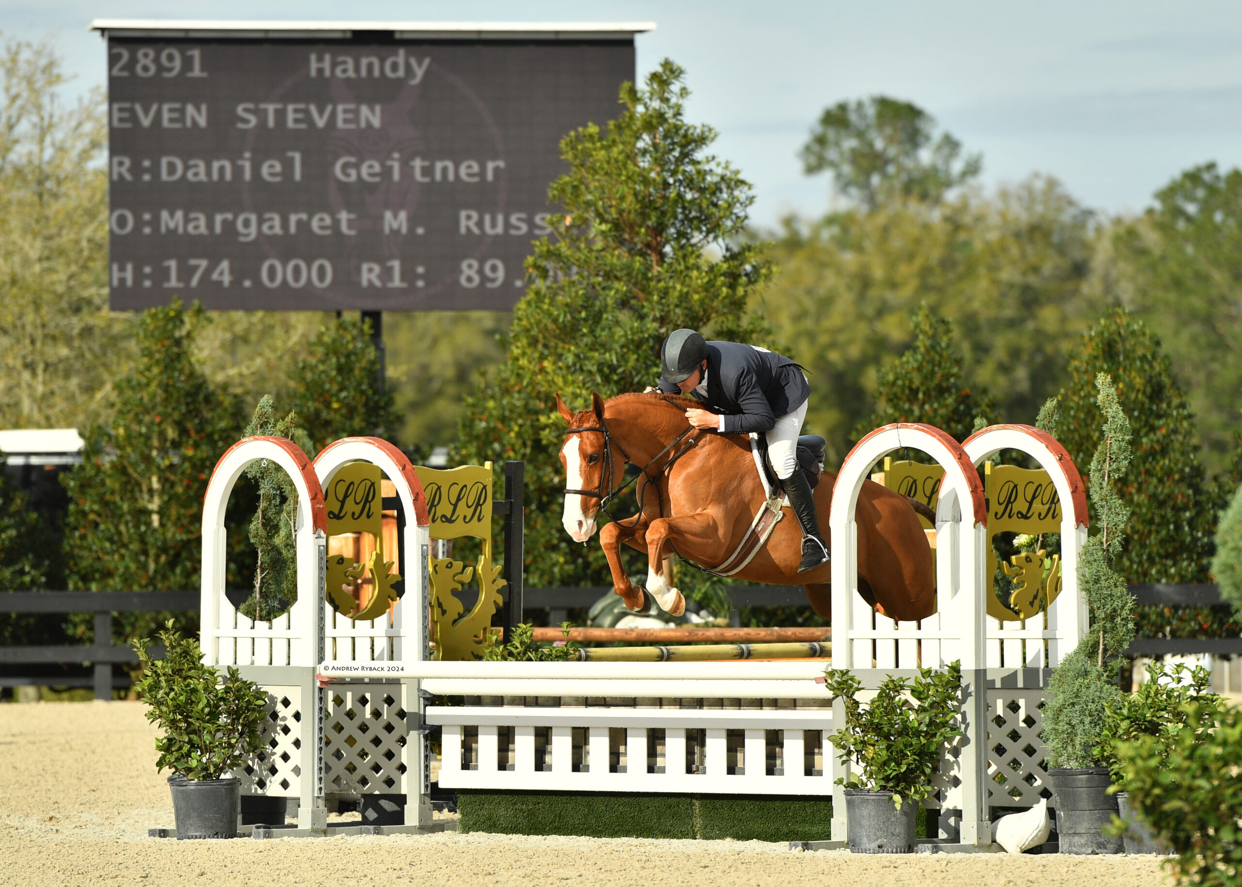 In the $15,000 UF Veterinary Hospital USHJA National 3’ Open Hunter Derby, Daniel Geitner secured the top position aboard Even Steven.
