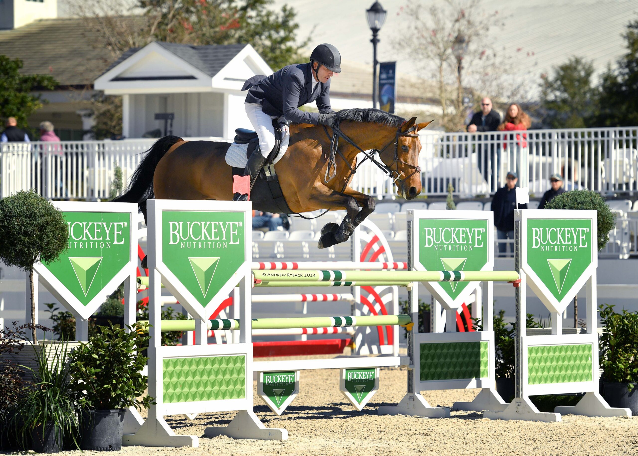 The $15,000 Buckeye Nutrition Futures Prix was the highlight event of Saturday afternoon. Ultimately, it was Daniel Geitner (USA) who secured a hat trick after winning the class aboard Jalanne.