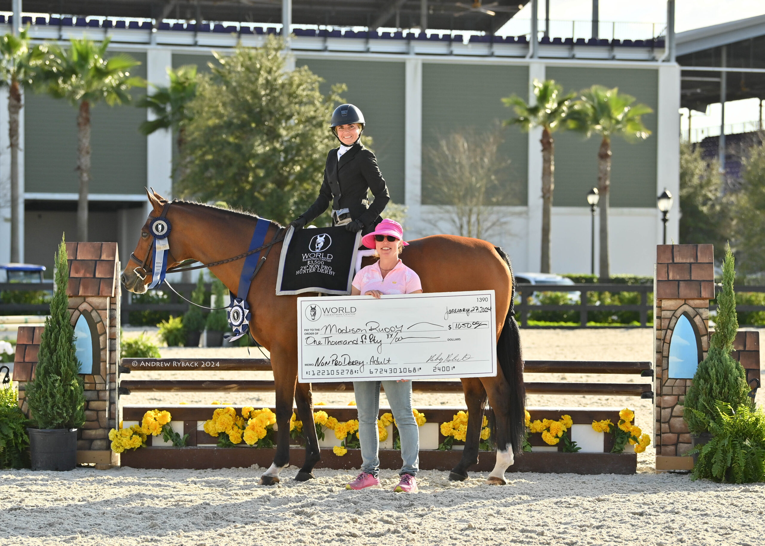 Ocala, FL – Week IV of the 2024 Winter Spectacular Show Series saw several familiar faces in the winner’s circle. There were several back-to-back victories on Hunter Derby Friday as Daniel Geitner secured his second win aboard Easy Money in the $20,000 Golden Ocala 3’6”-3’9” Hunter Derby, and Grace Loughlin piloted Briljant Z to another first-place finish in the $15,000 USHJA National 3’ Jr/Am Hunter Derby. Saturday night unfolded with Dorothy Douglas securing her second grand prix triumph in the $100,000 UF Health Grand Prix. Read on for additional highlights.